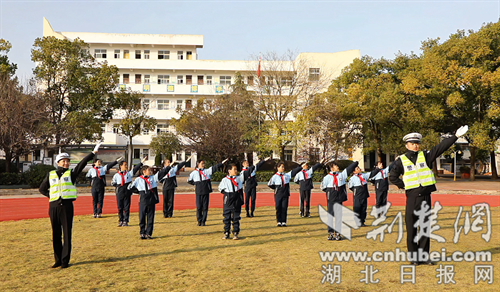 11月24日下午,高阳市中心小学课间休息时,交警带领学生们跳起了交通安全手势舞。同学们在欢快的节奏中学习了道路安全知识。