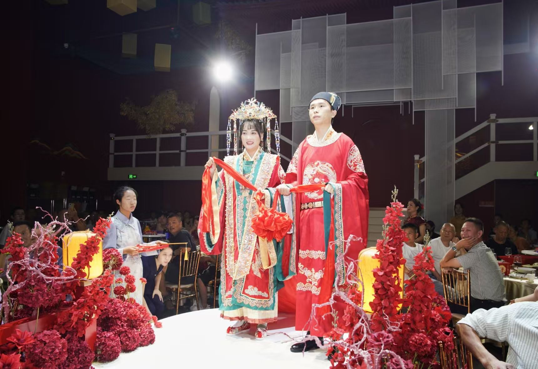 婚礼上还有两位特邀嘉宾:柯长山和葛震。他们都是金牌的员工。葛震也于2021年通过工作支持加入金牌,并在工作中认识了柯长山。两人于2024年元旦结婚。