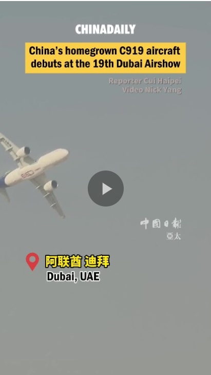 中国国机C919在第十九届迪拜航展上首次亮相。阿尔扎纳航空咨询公司首席执行官萨米尔·阿尔哈什米告诉《中国日报》,C919在非洲等市场具有巨大潜力。