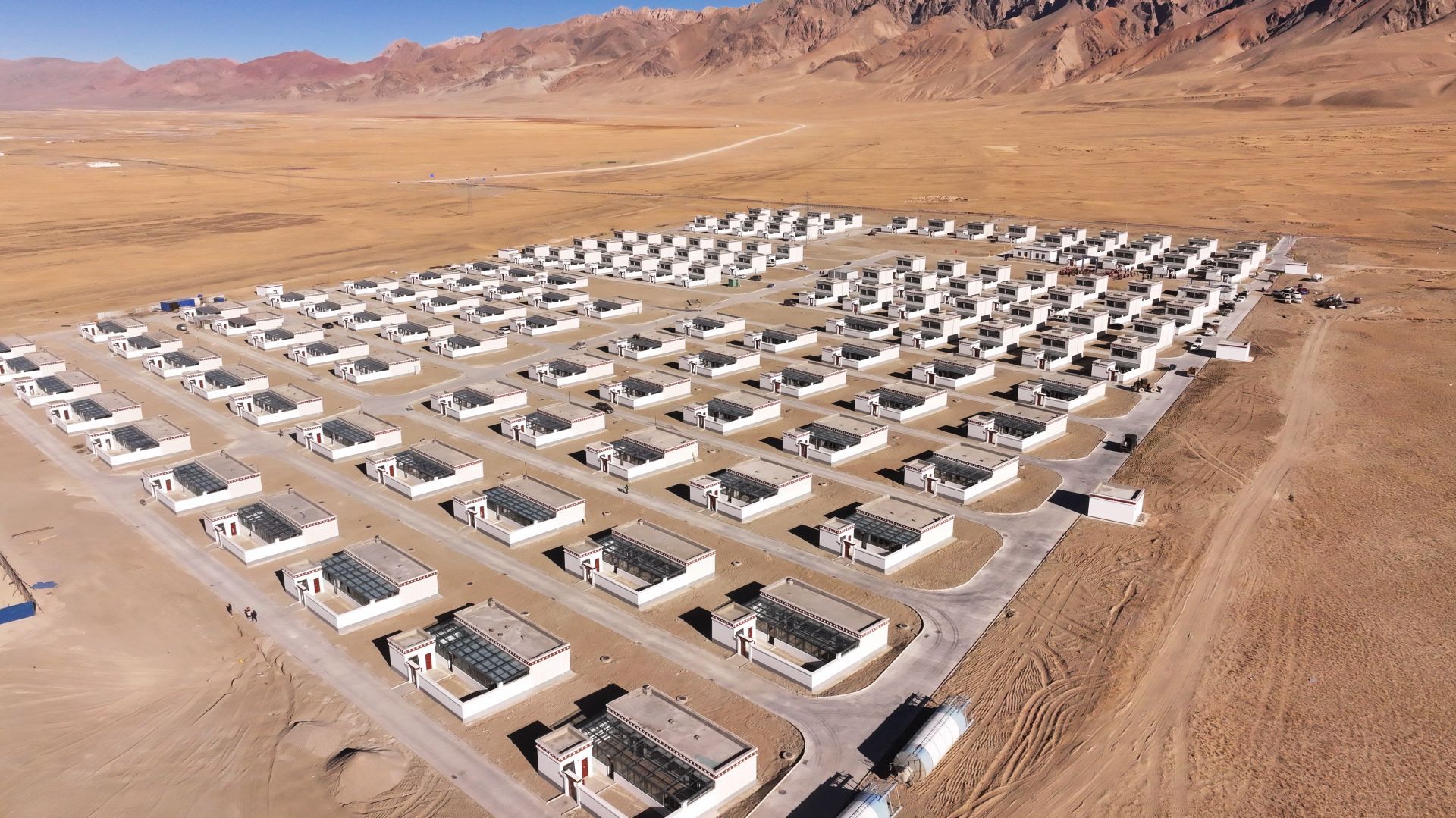图为从上方看到的盖瑟省马米区茶阔村一排排整齐的适合居住和经商的新建住宅楼。改泽县融媒体中心供图